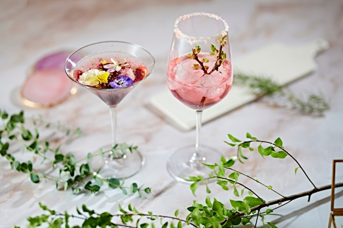 北アルプスのグリーンシーズンの訪れを祝うオリジナルカクテル2種類をお届けいたします。雪国の遅咲き桜をイメージした「桜日和」と、初夏に旬を迎えるブルーベリーのゼリーに、金箔とエディブルフラワーをあしらった宝石のような「Berry(ベリー) Jewel(ジュエル)」。白馬の雄大な自然を感じるカクテルで、静かに流れる時間をお楽しみください。