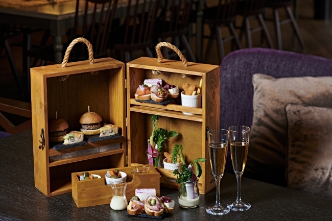 「イブニングハイティー」は、温かみのある木製のボックスに並ぶ信州の美味がちりばめられたお食事と、スパークリングワインや、カクテルのフリーフロードリンクがセットに。信州牛を使用したスライダーバーガーやサンドウィッチなど、軽食も充実しており、語らいのひとときはもちろん、ディナーとしてもご利用いただけます。また、「シーズナルカクテル」では、芽吹きの季節を感じさせる桜やローズマリーなど、ボタニカルなフレーバーをお楽しみいただけるホテルオリジナルの2種類をお届けいたします。
