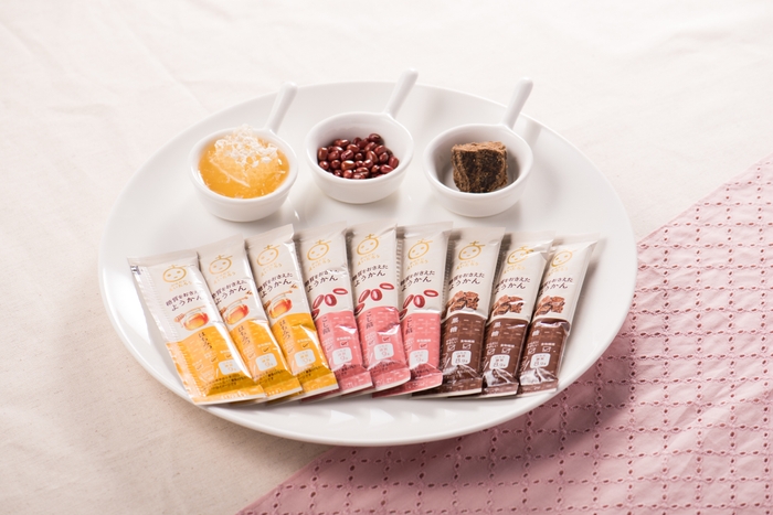 キレイになりたい・健康に気をつかいたい女性や、お腹のでっぱりが気になる男性など幅広い方々に、その日の気分に合わせて「こし餡」「はちみつ」「黒糖」の3種のフレーバーから楽しめる羊羹を提供いたします。