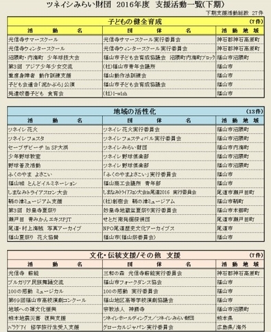 ツネイシみらい財団 備後地域の活性化に向け2016年度下半期27の事業を支援