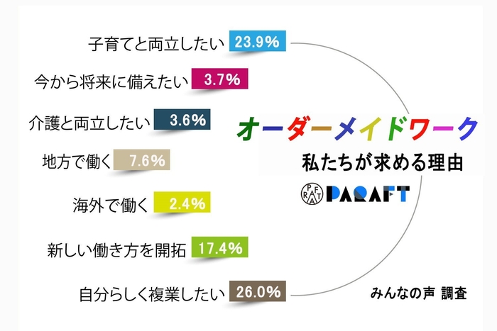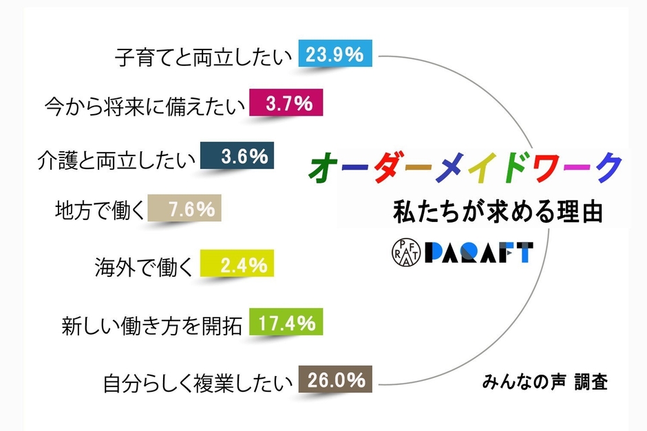 パラフト株式会社(本社:東京都渋谷区、代表取締役:山田 勝、以下 パラフト)は、リモートワークや複業などの多様な働き方から仕事を選べる転職求人サイト「PARAFT(以下 パラフト)」開設3周年を迎えた2018年2月、パラフト登録の求職者に登録時点で入力していただいた自由回答をもとに、なぜ今、新しい柔軟な働き方を求めているのかを集計調査しました。