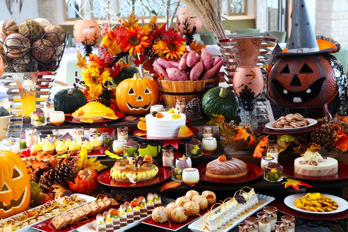 【徳島県・アオアヲ ナルト リゾート】~スペシャルモンブランや鳴門金時タルトなど秋色スイーツ30種以上~ ハロウィン×フレンチビュッフェ♪選べるメイン料理はテーブルへ