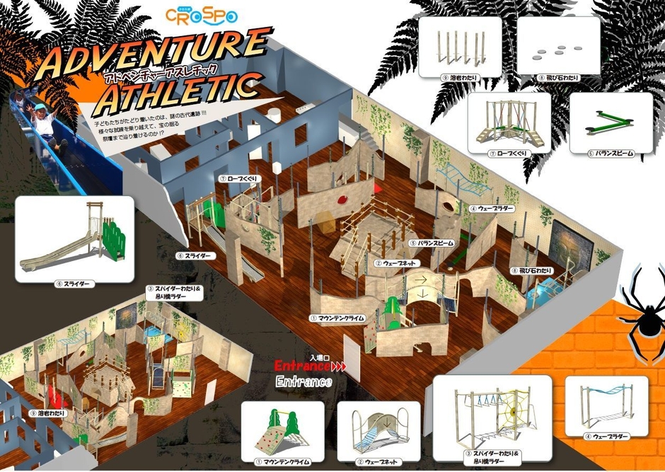 古代遺跡のアドベンチャーアスレチックを親子で大冒険! スポーツアミューズメント施設「CROSPO」千葉浜野店に 9月1日に新設