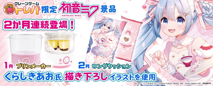 メルヘンチックな「初音ミク」の 限定プライズで癒しのひとときを…♪ イラストレーター くらしきあお氏描き下ろしイラスト使用の プリンメーカー&クッションが クレーンゲームアプリ『トレバ』に2ヵ月連続で登場!!