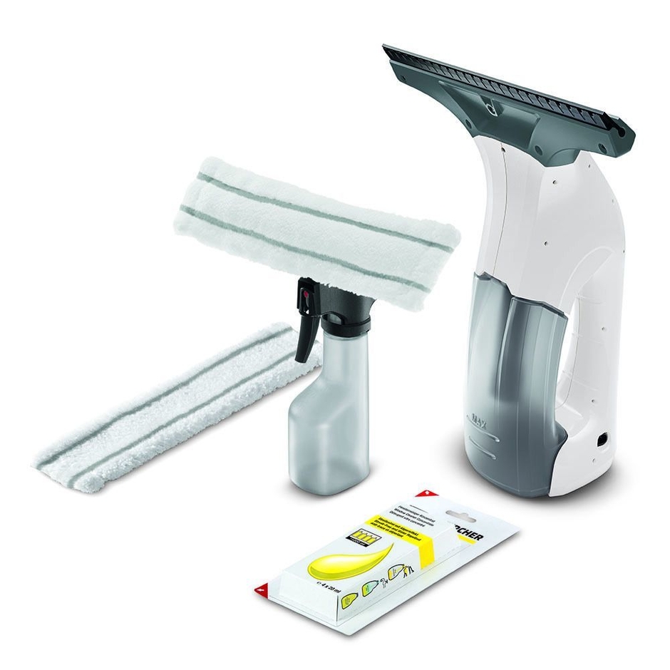 標準装備備品:スプレーボトル、ワイプパッド1枚、窓用バキュームクリーナー専用洗浄剤1個充電アダプター / スプレーボトル、ワイプパッド2枚、窓用バキュームクリーナー専用洗浄剤4個充電アダプター