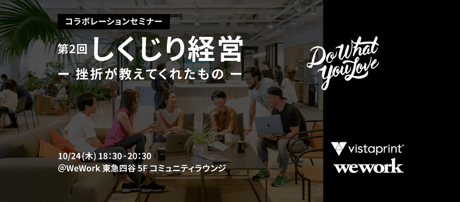 起業家や個人事業主、フリーランスの方対象! ビスタプリント WeWorkコラボレーションセミナー 第2回「しくじり経営-挫折が教えてくれたもの-」 2019年10月24日(木)開催