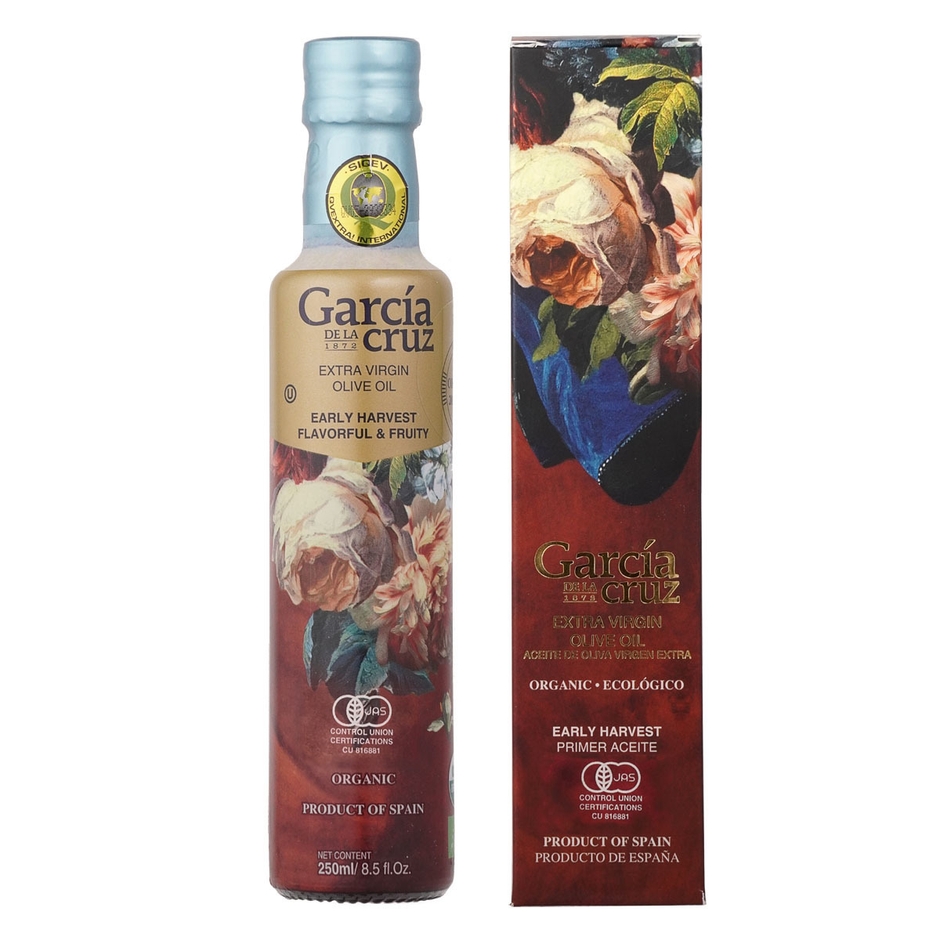 『ガルシア アーリーハーべスト有機EXVオリーブオイル 250ml 瓶』は、ガルシア社のオリーブオイルへのこだわりが詰まった特別なオリーブオイルです。有機栽培で育てられたグリーンオリーブを熟す前に収穫し搾油する事でフレッシュな風味が豊かな有機EXVオリーブオイルに仕上げました。収穫量が限られる希少な早摘み有機栽培グリーンオリーブを使用しており、生産量が少ないためオンライン限定販売となります。