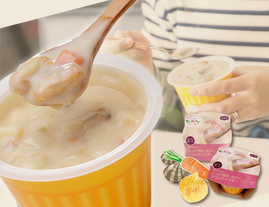 新生活の野菜不足に簡単便利! 国産野菜のお湯いらずレンジカップスープ 『たっぷり野菜とあさりのクラムチャウダー』が新登場