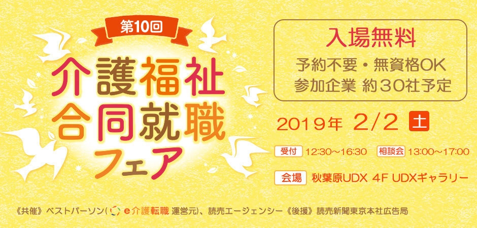 「第10回 介護福祉合同就職フェア」を2月2日開催! 29社による採用相談や講演会など秋葉原UDX 4F