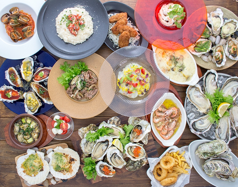 1)生牡蠣/2)夏のオイスターカクテル「山芋のソース」3)夏のオイスターカクテル「オクラとポン酢ジュレ」4)夏のオイスターカクテル「トマトジュレ」5)夏の焼き牡蠣「ブルギニョンバターと枝豆」6)夏の焼き牡蠣「チリトマトソース」7)定番人気の焼き牡蠣「ウニと牡蠣醤油」/8)カキフライ/9)牡蠣のアヒージョ/10)牡蠣とベーコンのブルスケッタ/11)牡蠣の素焼き/12)牡蠣のクリームグラタン/13)牡蠣とポルチーニ茸のクリームリゾット/14)鮮魚のカルパッチョ/15)牡蠣と茄子のトマトソーススパゲッティー/16)牡蠣とベーコン、オクラのペペロンチーノ/17)牡蠣のあぶり焼き/18)タコとフレッシュトマトのアヒージョ/19)牡蠣と牛肉・ゴーヤのガーリックソテー/20)バゲット/21)ケージャンチキンウィング/22)スペアリブ/23)ガーリックシュリンプ/24)スパイシーシーフードガンボ/25)トマトとモッツァレラチーズのカプレーゼ/26)生ハム/27)シーザーサラダ/28)ポテトフライ/29)季節のアイス/30)ガトーショコラ