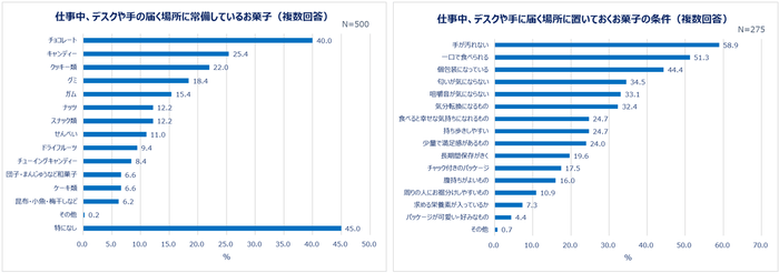 デスクに置いておくお菓子の条件「手が汚れない」。約半数は美容・健康を考慮した商品を選ぶ
