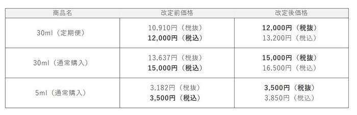 今回の改定は、より良い品質を維持し、皆様に確かな美肌効果をお届けするための決断でございます。