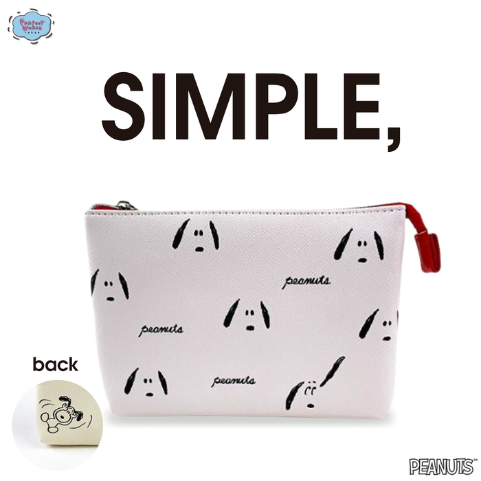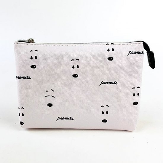 人気のスヌーピーフェイスデザインが、総柄になって登場です。アイテムの全面にフェイスが並んでいるので、とってもキュート。ポーチは人気の3ポケットなので、使い勝手も抜群です。