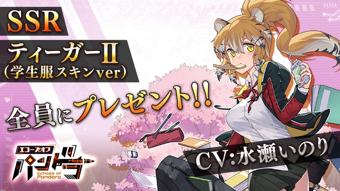 事前登録していただいた方々へ感謝を込めて、サービス開始時に、SSRキャラクター『ティーガーII(学生服スキンver)』を全員にプレゼントします。