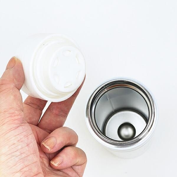 ステンレス製サーモボトルなので、保温、保冷ともにOK。夏でも冬でも快適な温度で飲めるのがありがたい!