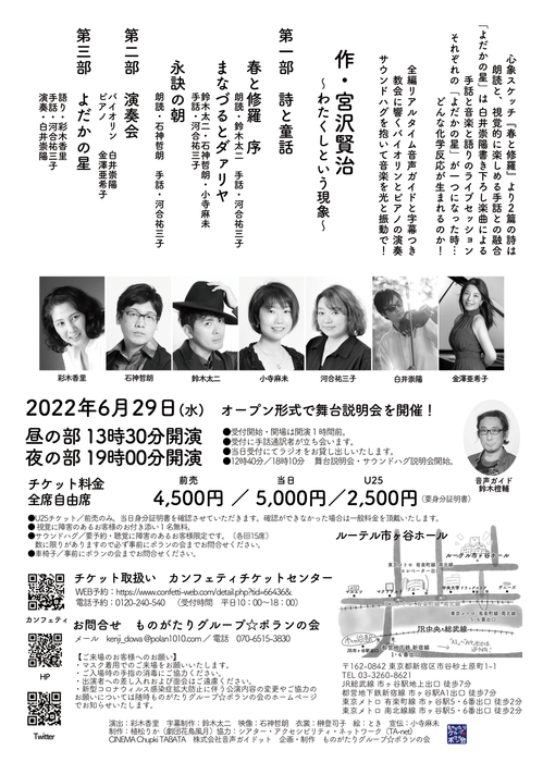 宮沢賢治の詩と童話を手話、音楽、語りで表現!
