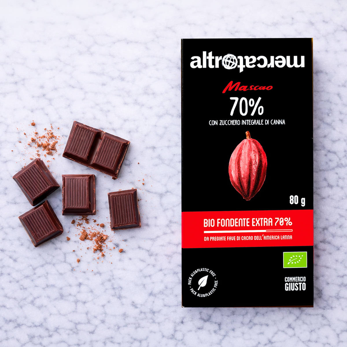 ラテンアメリカおよびアフリカの小規模生産者組合と直接取引したカカオを使用。オーガニックダークチョコレートスプレッドやココア・ヘーゼルナッツクリーム入りビスケットなどを展開し、WFTO認証をはじめとする国際フェアトレード基準に準拠しています。
