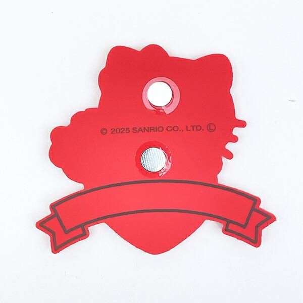 トレードマークの真っ赤なリボンと同じ、赤いハートを抱えた可愛らしい姿のキティちゃん!リボンロゴも赤で統一されていて、赤の中に白文字がより一層ラブリーです。