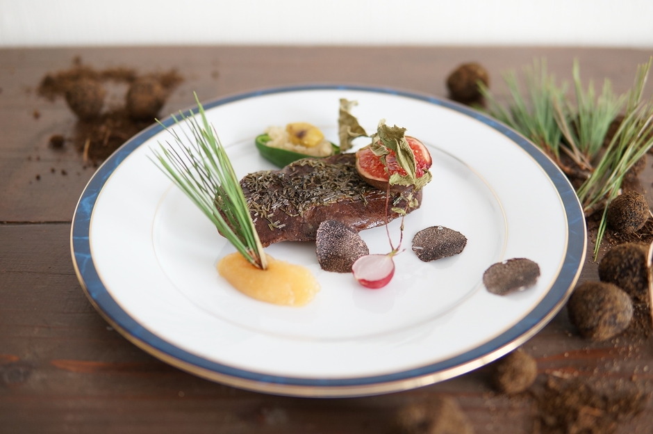 その純国産『八ヶ岳天然黒トリュフ』をフレンチの素材として使えるまでに熟成させ、その日の朝に採取した野草と共に、最高級の地元八ヶ岳風創作フレンチ料理として提供できるようになりました。