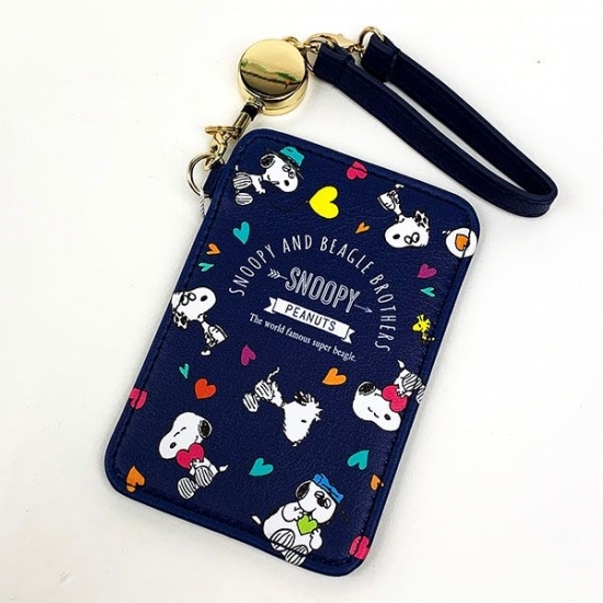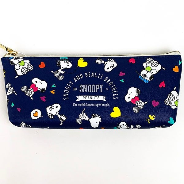 色違いのネイビーもキュートですね。スヌーピーたちやハートのデザインも映えて、きれいです。スリムタイプのペンケースは、オフィスや学校、バッグの中でも邪魔にならないのでオススメです。