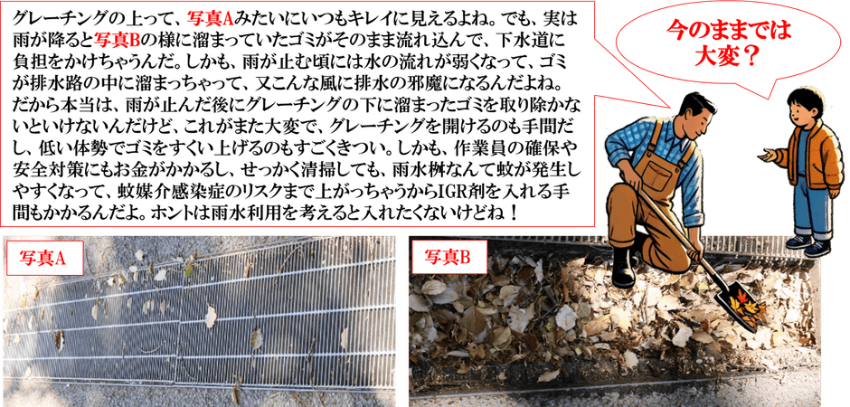 こうした「やりたくても、やれない」維持管理課題が全国で多発する中、当協会は“雨水の集水構造から解決する”アプローチを提案します。