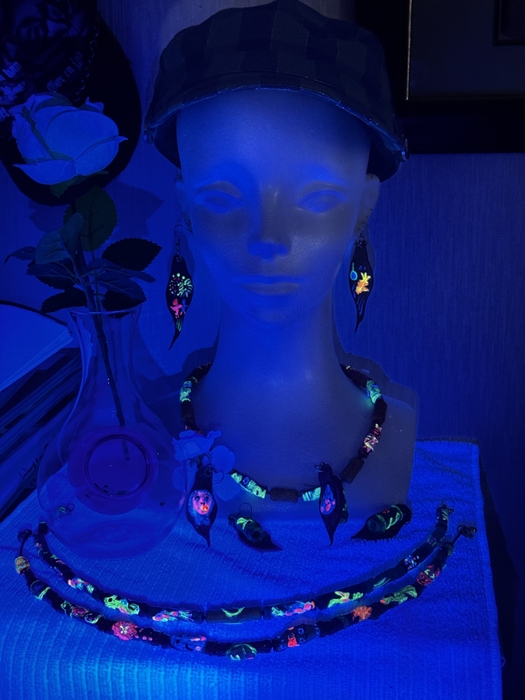 ・夜間ブラックライト等の照明による浮き絵等が美しく光る幻想的価値