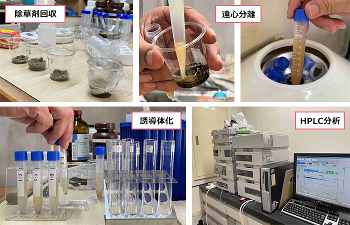 結論 → 雨水などで流出した除草剤は水が乾けば再度土壌に残留するが、オゾン水では再残留を半減できるため、繰り返しのオゾン処理により土壌に残留する除草剤の分解除去が可能と考える。