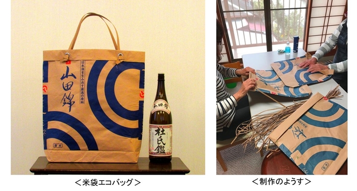 山田錦の米袋をリサイクルした「米袋エコバッグ」を白鶴酒造資料館で発売