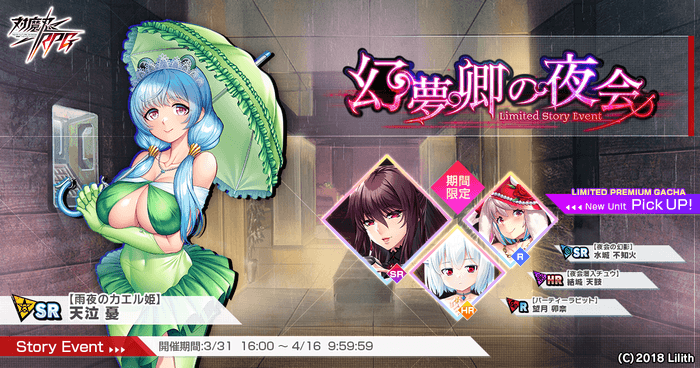株式会社インフィニブレイン(本社:大阪市中央区、代表取締役:武山 英治)は、オンラインゲームプラットフォーム「DMM GAMES」( https://games.dmm.com/ )にて配信している、近未来くノ一ロールプレイングゲーム『対魔忍RPG』は、3月31日(月)より限定ユニットを獲得できる期間限定ストーリーイベント「幻夢卿の夜会」などをお知らせいたします。