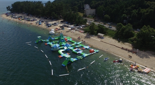 日本最大級!水上アスレチック「アドベンチャーウォーターパーク」 琵琶湖・白ひげビーチに7/1~9/24期間限定オープン! 今年は全国最大級の「ツインスライダー」が登場!