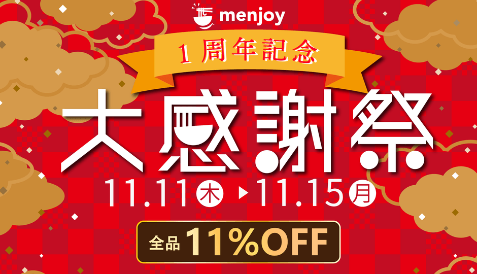 お取り寄せラーメンサイト「menjoy」が1周年! 11月11日から11月15日まで大感謝祭を実施 スーパーセールや限定ノベルティプレゼントなどおトクが満載