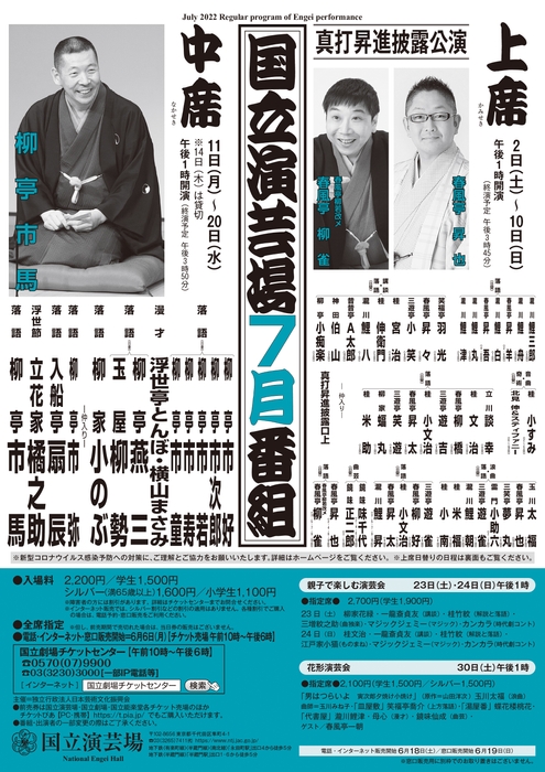 毎月落語や漫才を楽しめる 「国立演芸場 令和4年7月中席公演」柳亭市馬ほか出演者決定 カンフェティでチケット発売