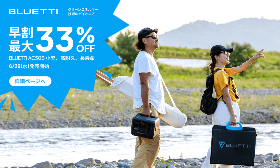 2024年6月26日、グローバルな新エネルギーブランドBLUETTIは、日本で最新の小容量ポータブル電源「AC50B」を発表しました。この新製品は優れたハードウェア構成と性能を誇り、防災およびアウトドアライフの最適な選択となることが期待されています。