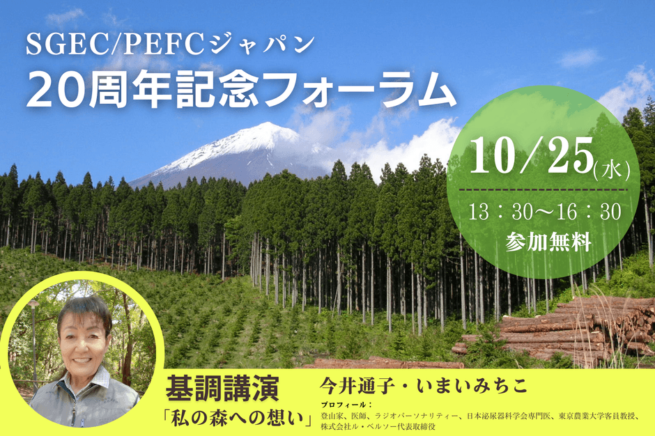 SGEC/PEFCジャパンが20周年記念フォーラム 「SGEC/PEFC 森林認証のこれまでの歩みと今後の展望」を 東京・全国都市会館で10月25日(水)に開催