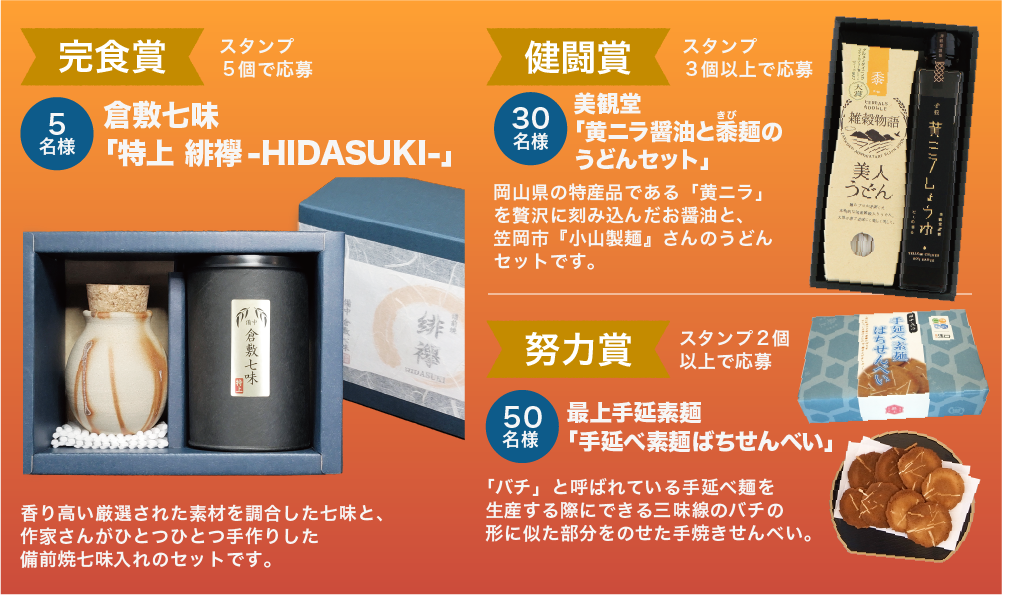 スタンプを集めると、抽選で流域の麺をさらに楽しめる素敵なプレゼントが当たります!