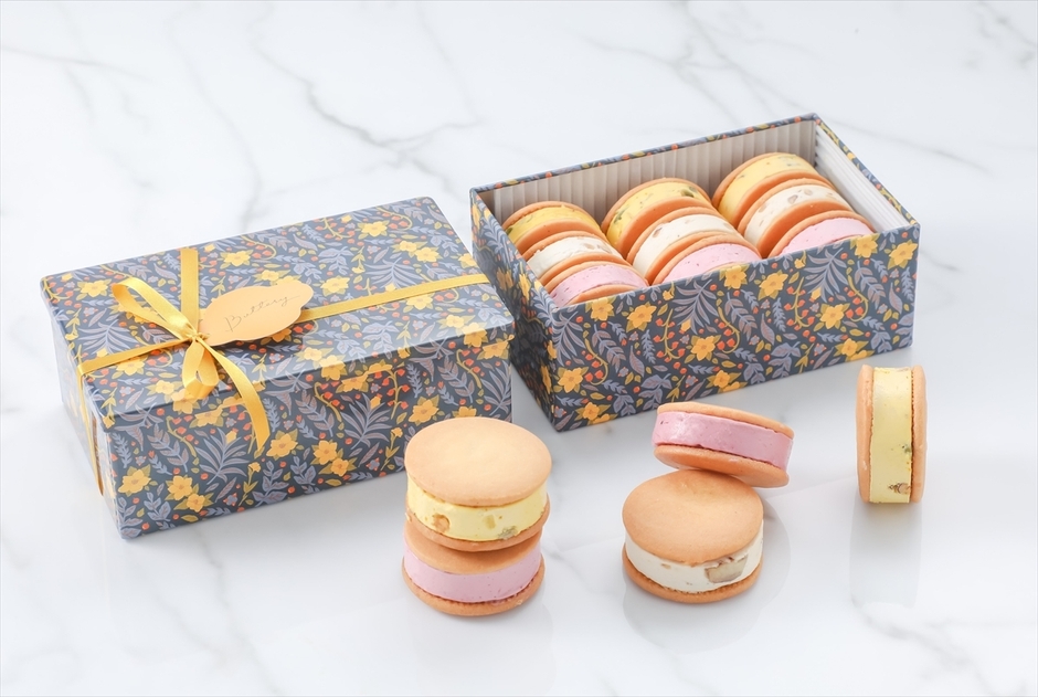 また、見た目も鮮やかな、オリジナルデザインのクッキー缶も魅力の1つ。レトロな花柄に、マスタードカラーのリボンをあわせた、クッキー缶入りのバターサンドは、自分へのご褒美にはもちろん、秋ギフトにも最適です。