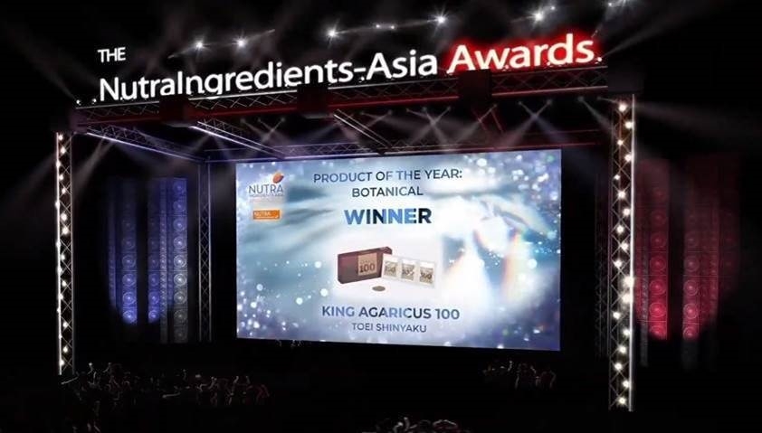 表彰の対象は、「アジア太平洋地域で最高のサプリメントと機能性食品、成分、研究」となります。授賞式は、2020年9月22日にNutraIngredients-Asia.com上でバーチャルイベントとして開催されました。賞は世界中の企業に門戸を開いており、製品または成分の少なくとも1品がAPAC(アジア太平洋)市場で利用可能であることを条件としています。表彰は14のカテゴリーに分かれており【キングアガリクス100(King Agaricus 100)】は、日本国内での販売実績と、これまでに発表した論文数を審査員に高く評価され、「Product of the Year - Botanical」を受賞しました。