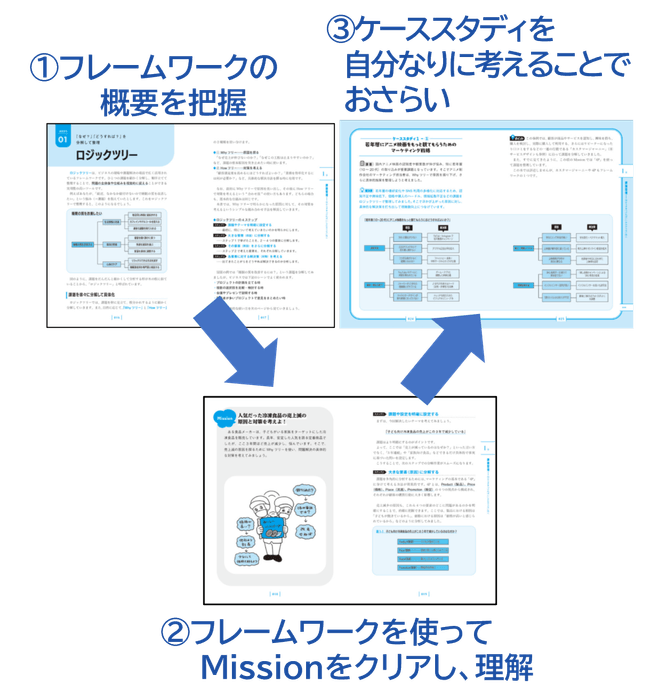 本書では、厳選した20のフレームワークを仕事の流れに沿った7つのプロセスに分け3段構成で解説。