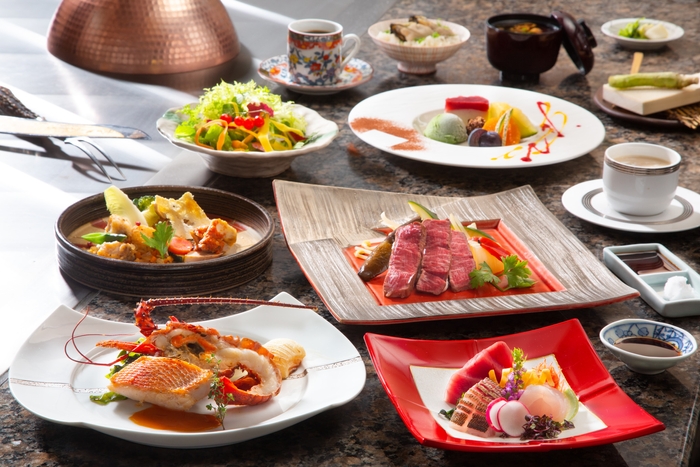 ◆ご夕食は、お箸で気取らず頂くフレンチ懐石と鉄板焼