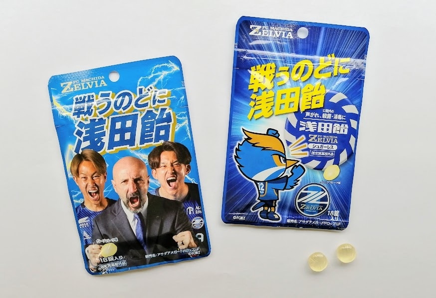 株式会社浅田飴(所在地:東京都千代田区、代表取締役社長:堀内 邦彦)は、JリーグFC町田ゼルビア(株式会社ゼルビア、所在地:東京都町田市、代表取締役社長:大友 健寿)とのコラボ製品「戦うのどに浅田飴」を、2021年5月30日(日)のホーム戦(浅田飴マッチデー)より数量限定(各4,000袋)で発売いたします。