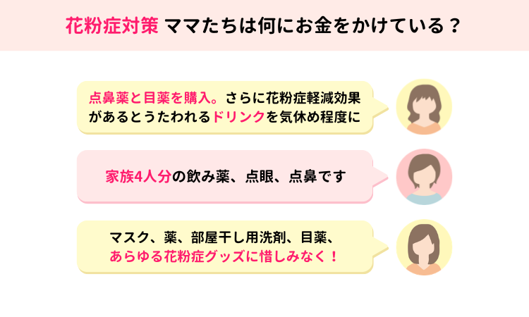 「マスク、薬、部屋干し用洗剤、目薬、あらゆる花粉症グッズに惜しみなく!」
