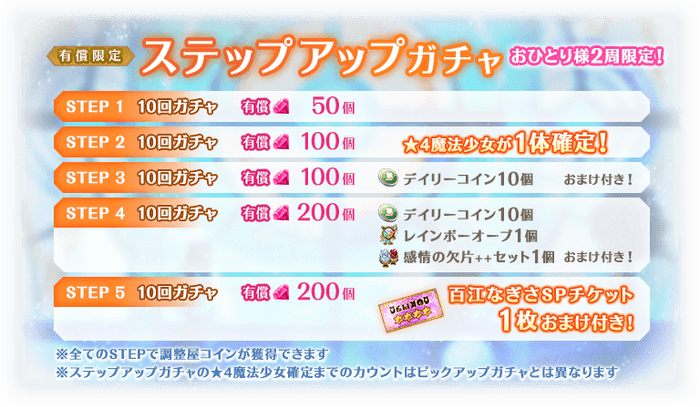 ※STEP5、STEP7での★4魔法少女について、ピックアップ対象の魔法少女が確定するわけではございません。