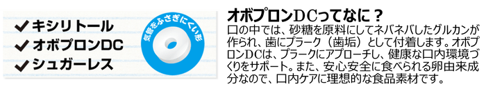 本製品は、虫歯の原因となるミュータンス菌にアプローチするオボプロンDCとキシリトールが配合されたタブレットで、食後のおやつや歯みがき後のご褒美にもお召し上がり頂けます。お子さまの歯みがき習慣のサポートにお使い頂けるアイテムです。さらに、従来の6つの味もパッケージが変わってリニューアルします。