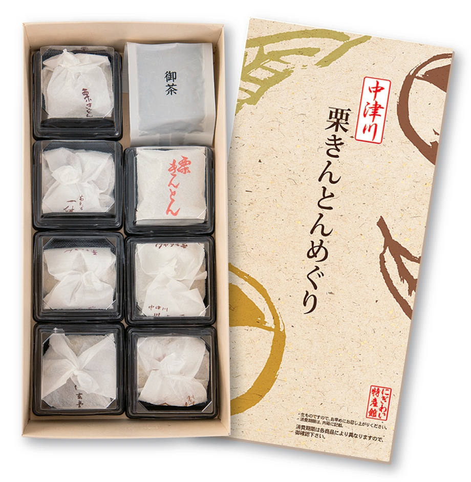 中津川市のお隣の岐阜県恵那市も「栗きんとん」の名店ぞろい。各店自慢の栗きんとんが一つずつ食べられる詰め合わせセットを恵那市限定で販売しています。今年は市内8店舗の栗きんとんを1つの箱に詰めました。各店それぞれの「栗きんとん」を味わいながら、恵那の秋を楽しめる商品となっています。