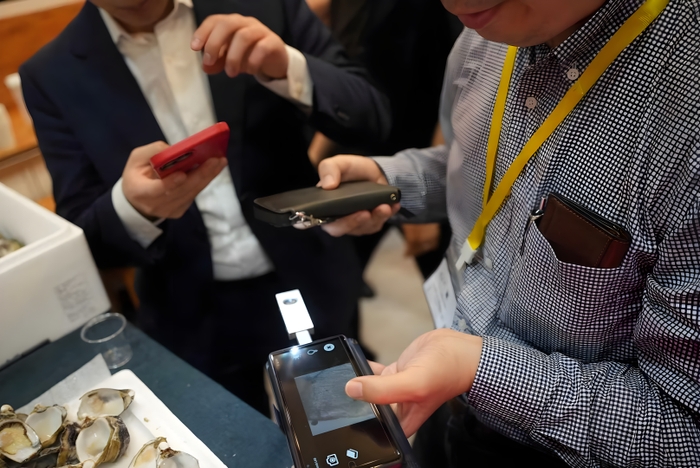 また、参加者の中にいたIDDK社のCEOの上野宗一郎さんが、MID(Micro Imaging Device)を用いて牡蠣の細胞をみるということも披露されていて、ほかの参加者の興味を集めていました。