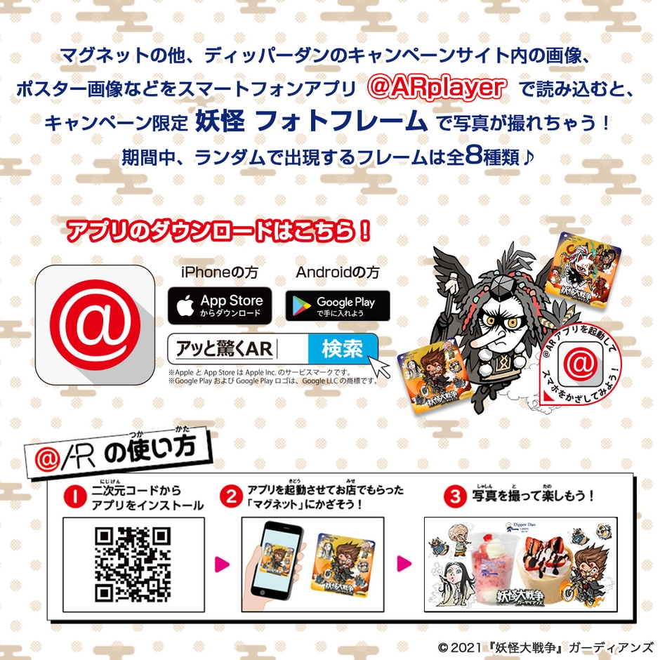 マグネットやキャンペーンポスターをスマホアプリ『@AR Player」で読み取るとかわいい妖怪キャラと一緒に写真が撮れちゃうARフォトフレームもお楽しみ頂けます。