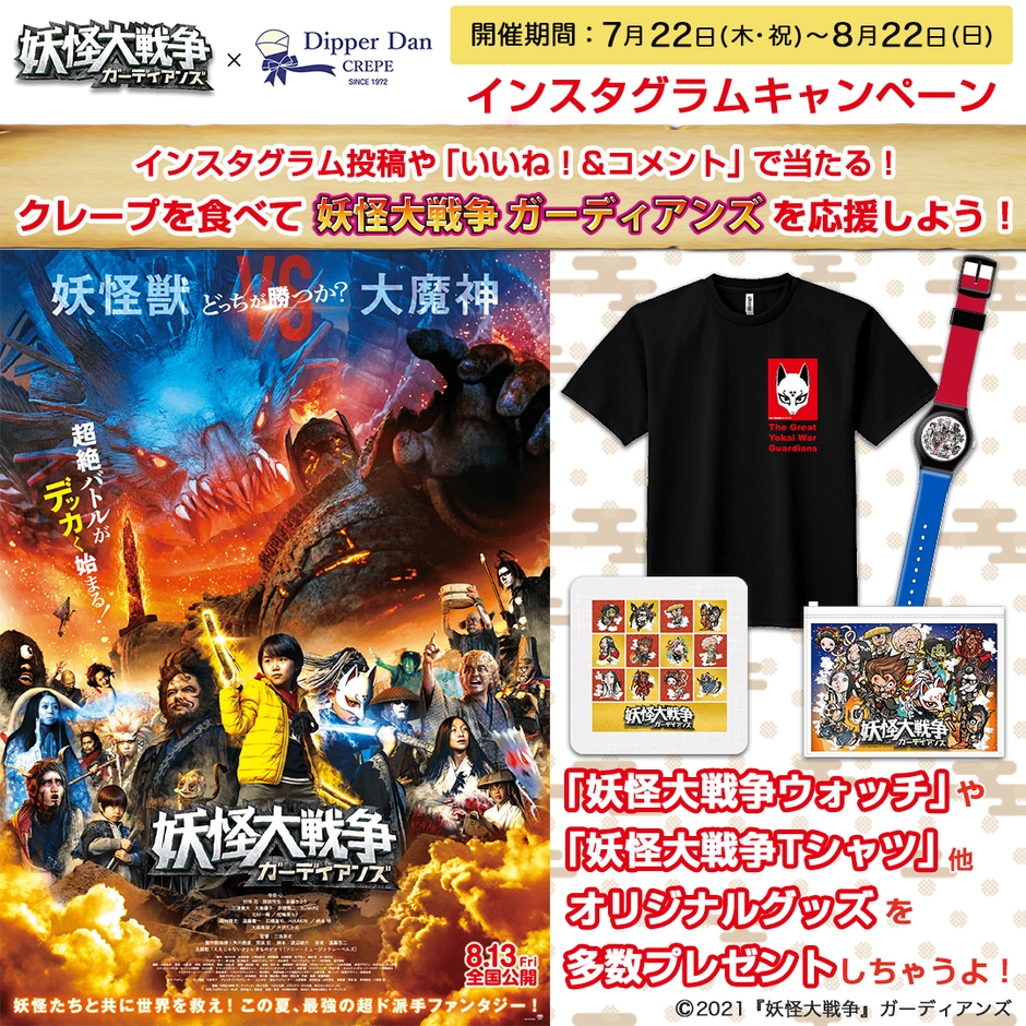 期間中、ディッパーダンへご来店、ご購入の商品を撮影いただき、公式フォロー、キャンペーンタグを付けて投稿してくださった方の中から、抽選で8月13日(金)公開の『妖怪大戦争 ガーディアンズ』非売品オリジナルグッズをプレゼントいたします!