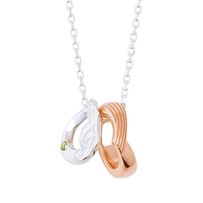 ト音記号パーツの表面にはイメージカラーストーンをセットし、V字パーツの表面には五線譜を取り込みました。内側にはさりげなく楽器アイコンを刻印しています。