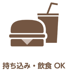 コンビニやスーパーで買ったフード・ドリンク、近くのお店のテイクアウト、ケーキなどもお持ち込みいただけます(内容によっては事前にご相談ください)。