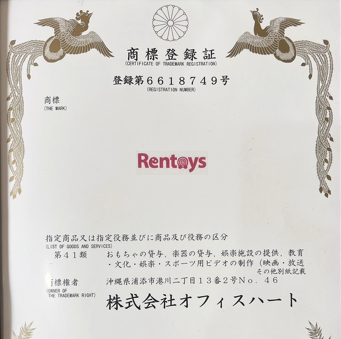 株式会社オフィスハート(本社所在地:沖縄県浦添市港川、代表取締役:土屋 佳子 以下、当社)は、この度木のおもちゃセットのレンタルサービス「Rentoys(レントイス)」の商標登録を完了しました。